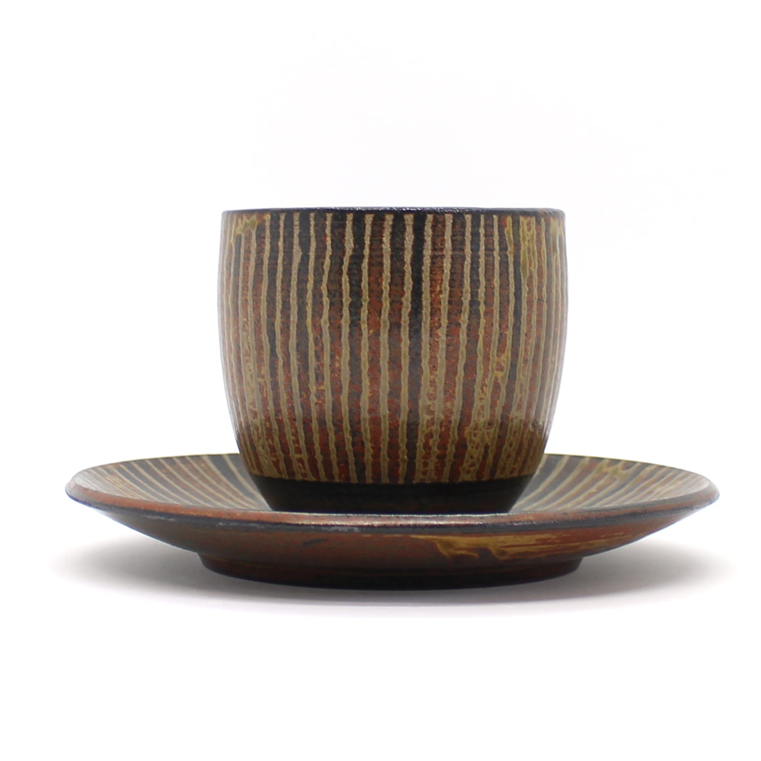 植田禎彦 コーヒーカップ&ソーサー小 線紋 波賀焼 ブラウン 茶色 小皿 マグカップ 陶芸作家 器 うつわ UED-007